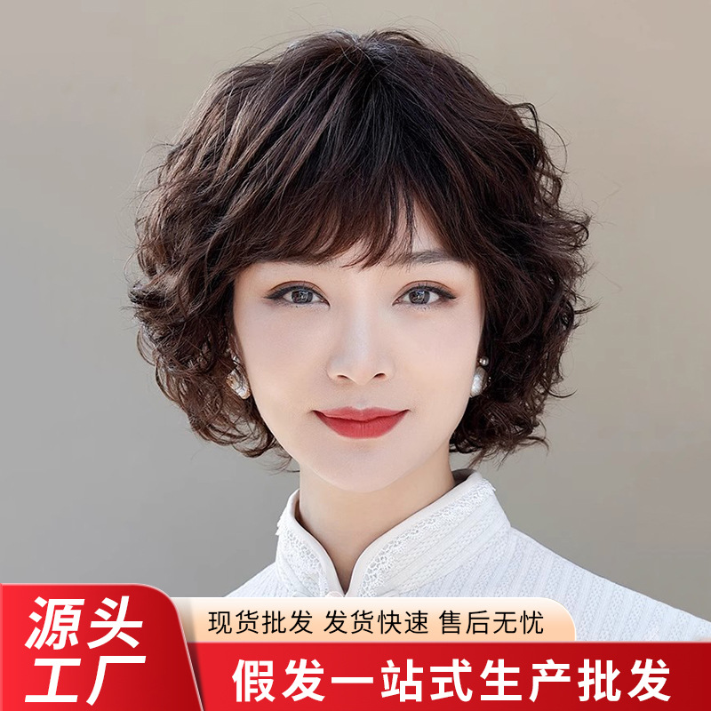 假发女短发全头套真发中老年女士自然整顶妈妈款发套工厂现货批发
