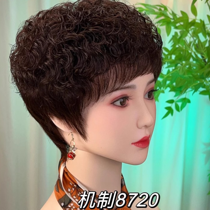 假发女士发套手织假发头套真发短发中老年妈妈款全真发轻薄透气款