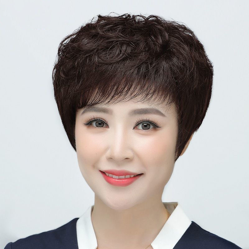 かつらの女性の短いカールの本当の髪の女性の中高年のお母さんのかつらのファッションは顔を修理してかつらのショートヘアを整えます。