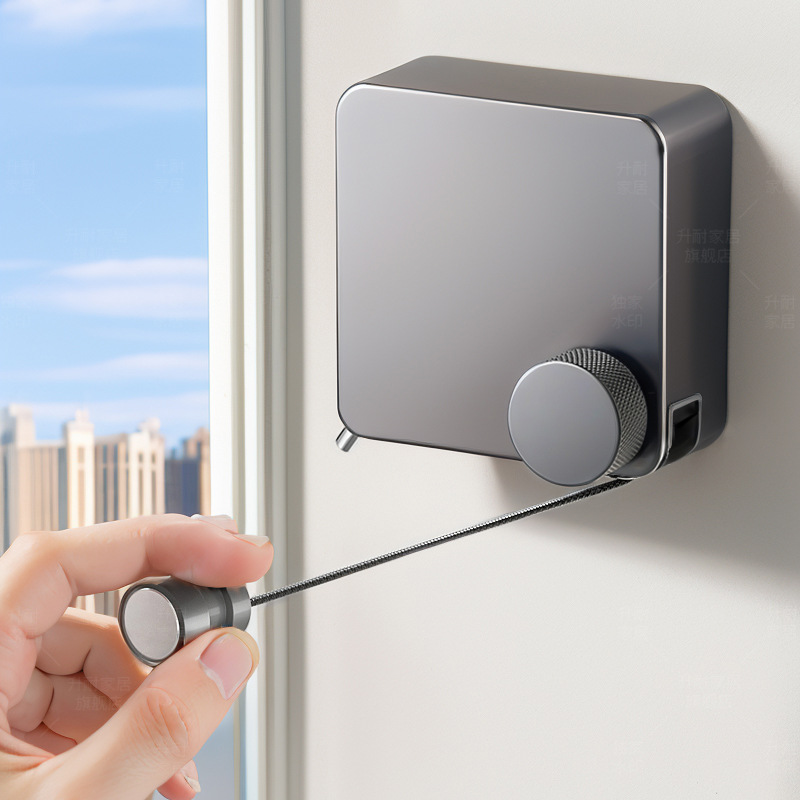 目に見えない物干しロープ、バルコニー用の目に見えない収縮物干しロープ、伸縮式パンチフリーの太い目に見えないスチールワイヤー物干しロープ