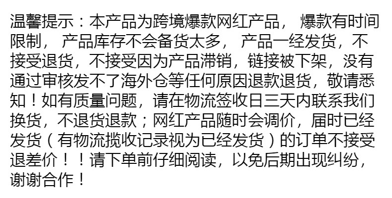 1688.comは中国で生産され、流通している商品を扱うBtoB卸サイトとなります。お客様が弊社サイト内にて仕入処理をされても、日本国内の法律に則り、日本への輸入ができない商材もあり、その場合弊社でも仕入れの手配が出来ません。その際はシステム上で、自動的に注文削除となってしまう事を、恐れ入りますがご了承願います。