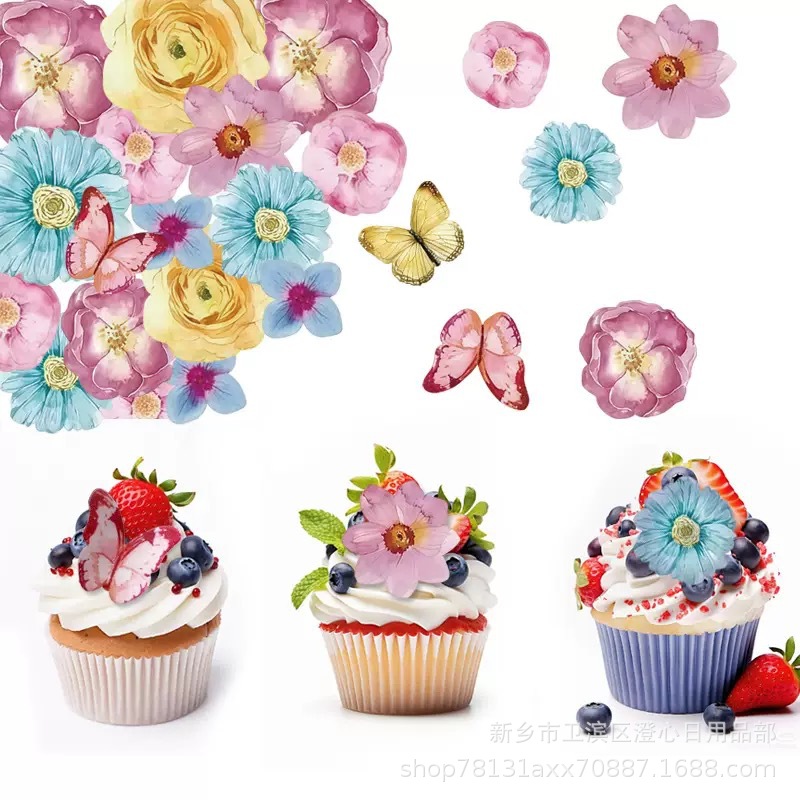 烘焙糯米纸蝴蝶可食用蛋糕装饰生日蛋糕冷盘花朵冷菜diy摆盘创意