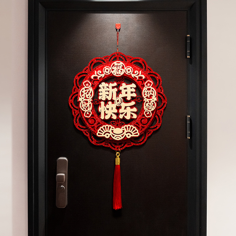 2024龍年新年旧正月装飾用品年越しシーンにリビングルームを配置してドアに入れて福字のドアを掛けます。