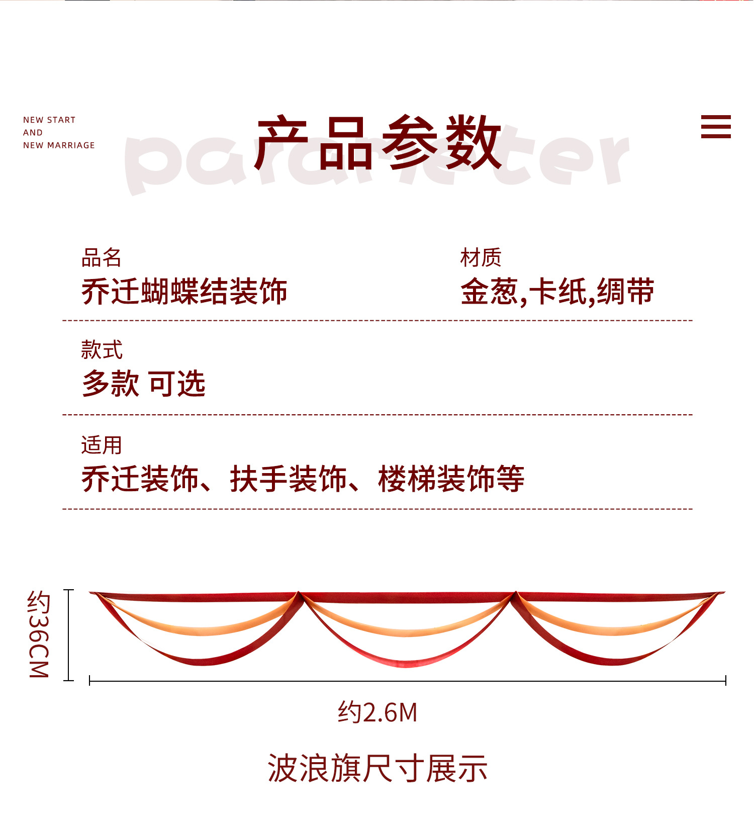 喬迁の喜新居ベランダ拉花結婚装飾品波旗提灯結婚式結婚式別荘シーン配置