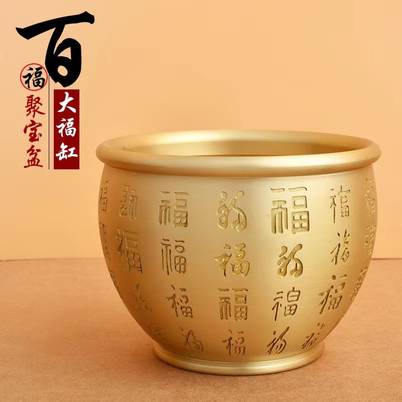 純粋な黄銅の米のかめの中で金のヒキガエルの百福のかめの宝のたらいのテーブルの置物の灰皿の書斎は財を招いて福の置物を納めます。