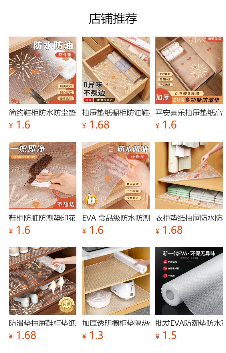 卸売EVA防湿マット、防水、ハイエンドキッチン耐油マット、キャビネットマット、滑り止めマット、冷蔵庫ワードローブ引き出しマット