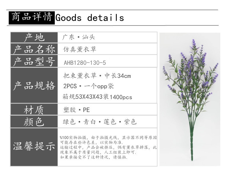 現物クロスボーダー直供人工ラベンダー造花5叉シミュレーション花diy家庭装飾プラスチック花室内装飾