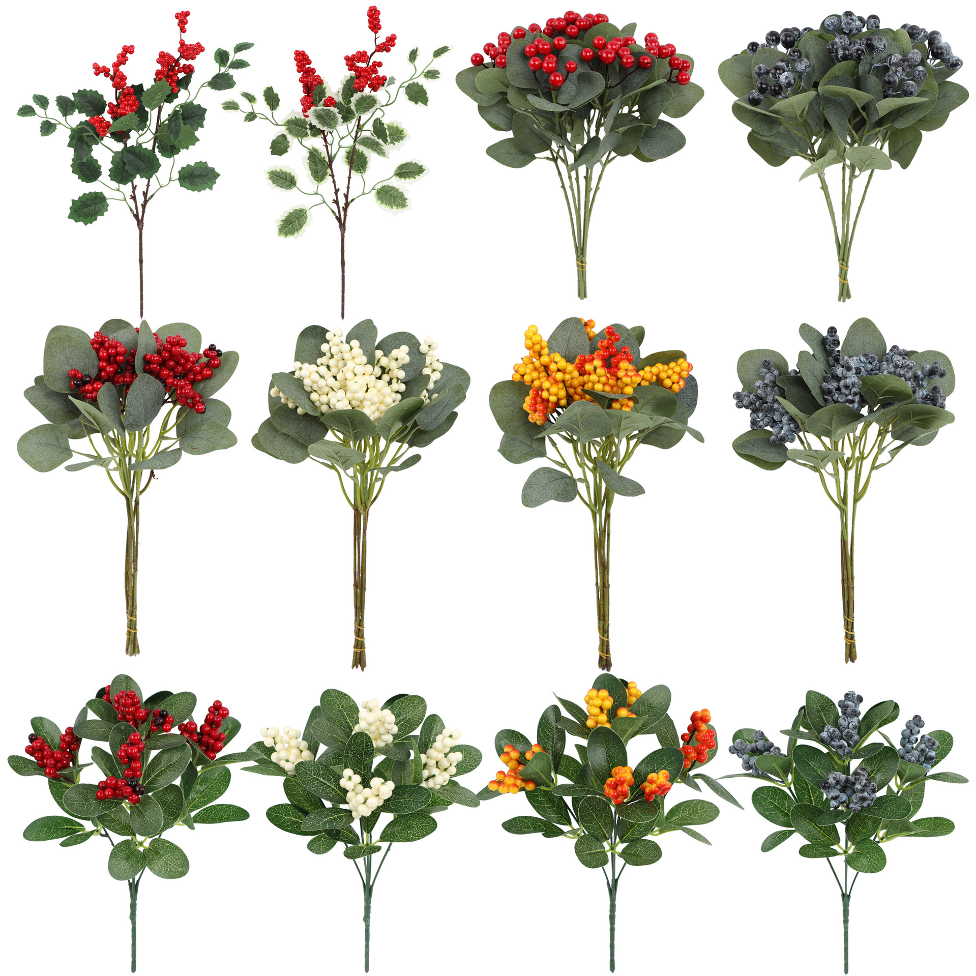 クリスマス模造紅果福果ユーカリの葉ユーカリグリーン人工花装飾ホームフラワーアレンジメント卸売