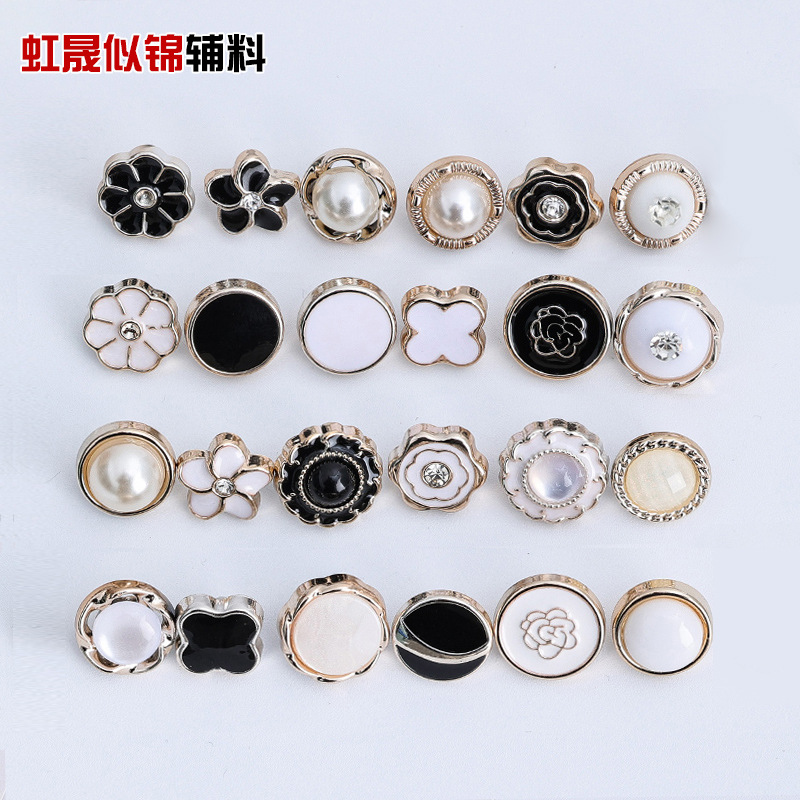 プラスチックボタン猫眼珠光補助材料手縫い金辺円形小香風精致高級コートシャツボタン