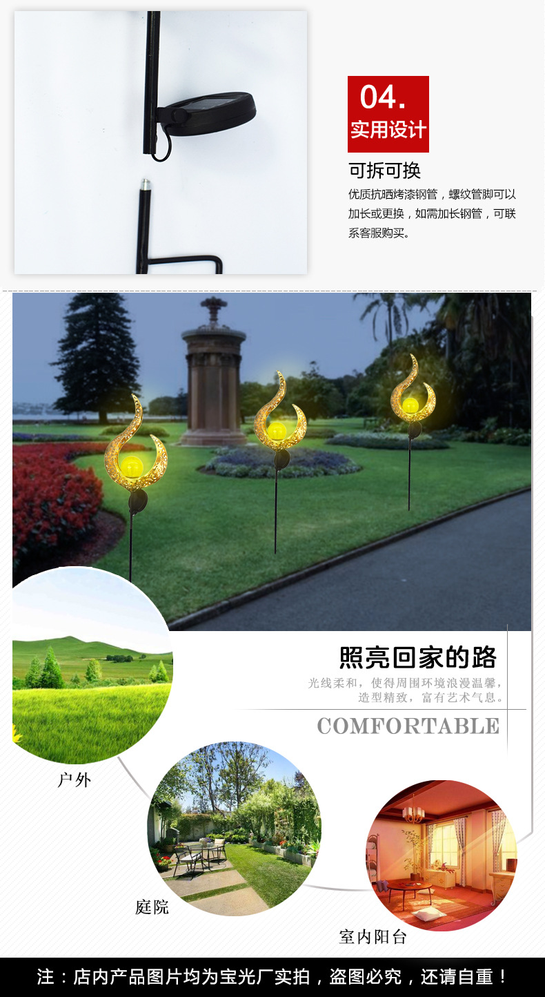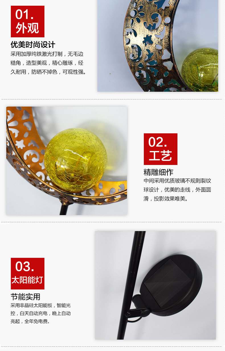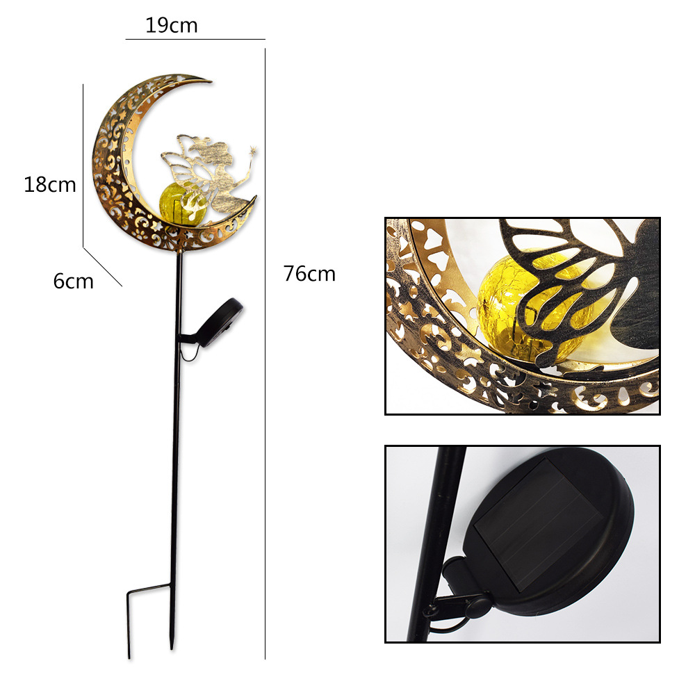屋外ガーデンソーラーランプムーンサン風景中庭中空ランプアンティークアイアンアースプラグライトアンビエントライト