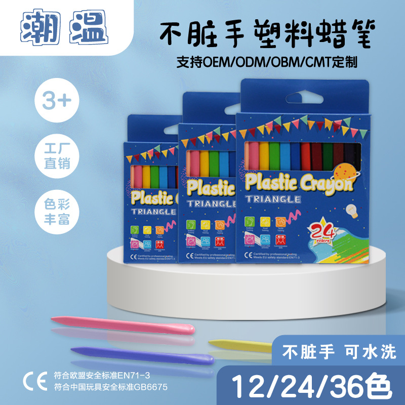 子供の汚い手の三角のプラスチックのクレヨンの12色の絵画の24色の36色の絵は水で洗うことができます。
