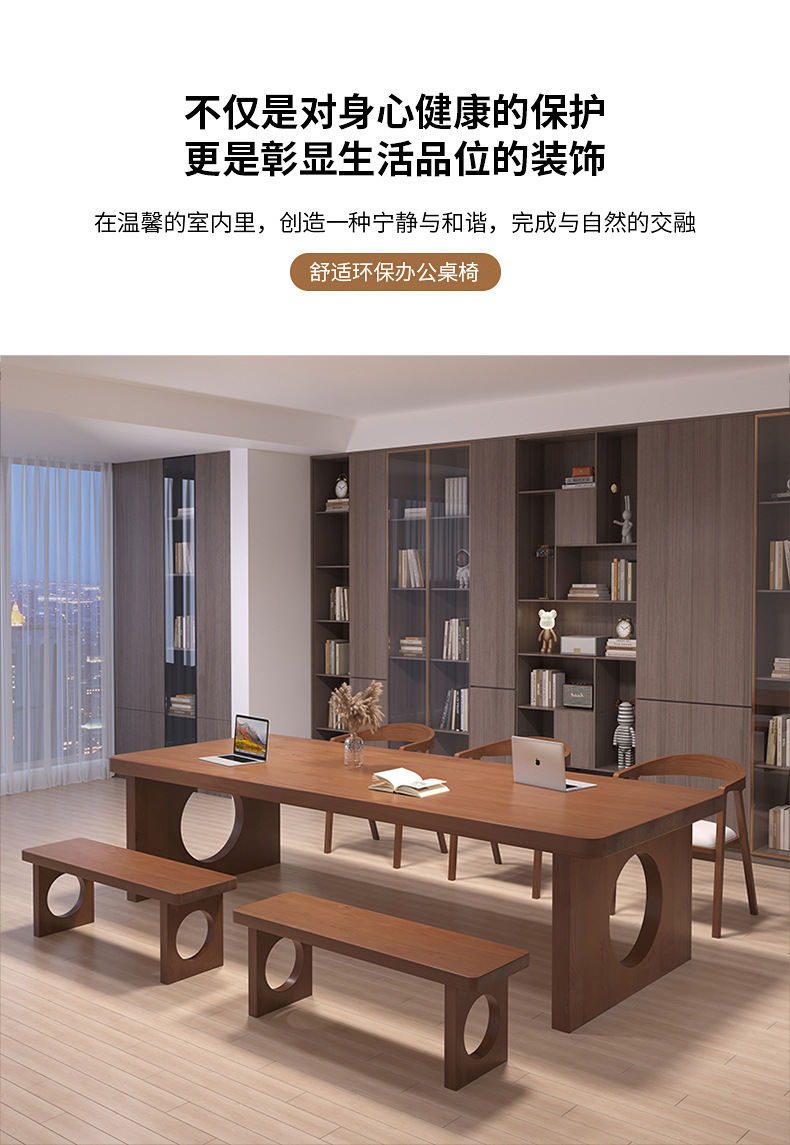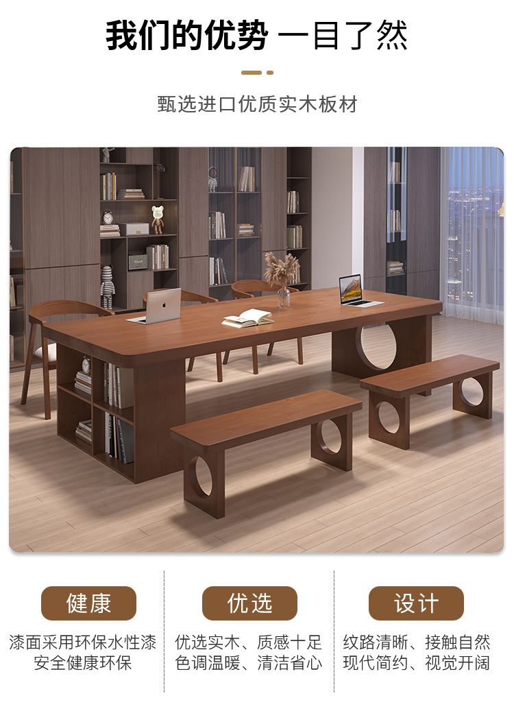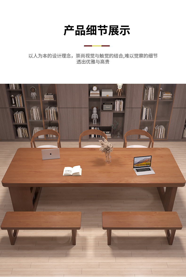 天縦アメリカ式全実木長条机閲覧テーブル大型商用商談テーブル事務テーブルと椅子の組み合わせ
