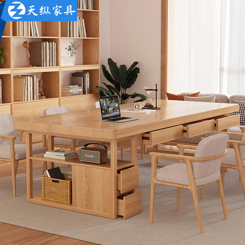 Tianzong アッシュデスク本棚一体型リビングルーム学習テーブル引き出し付きホームロングテーブル無垢材コンピュータテーブル