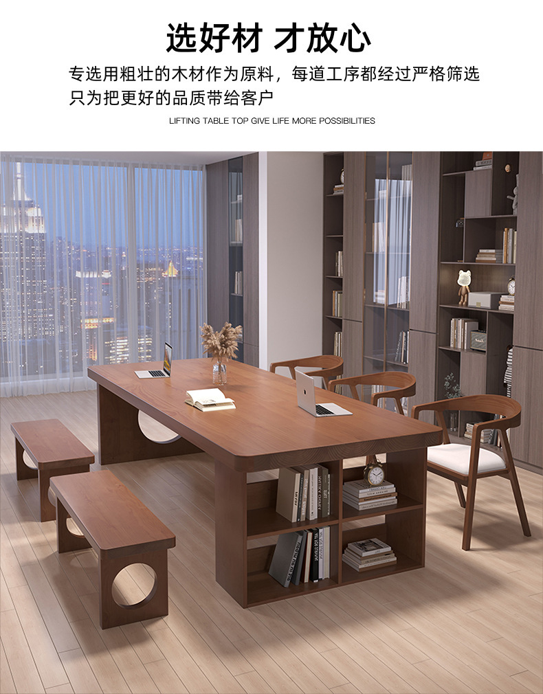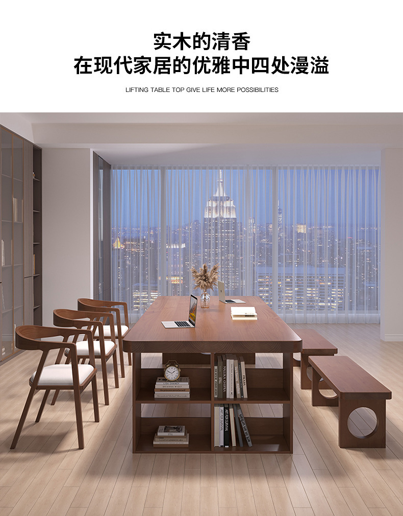 天縦北欧純実木大板長机本棚一体テーブル家庭用机引き出し付きリビングデスク