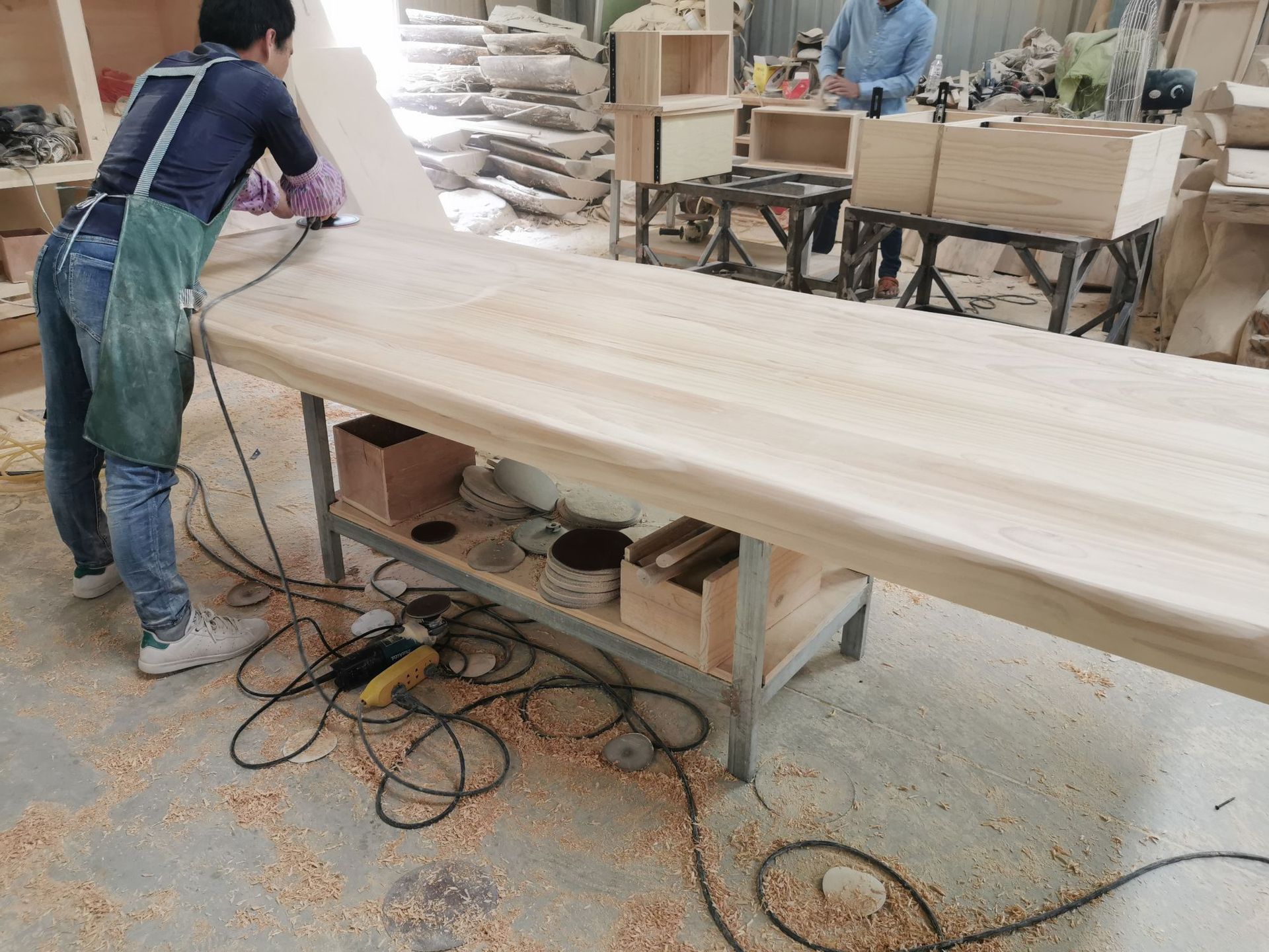 天縦アメリカ式実木会議テーブル長テーブル職員デスクスタッフ業務接待相談トレーニングテーブル作業台