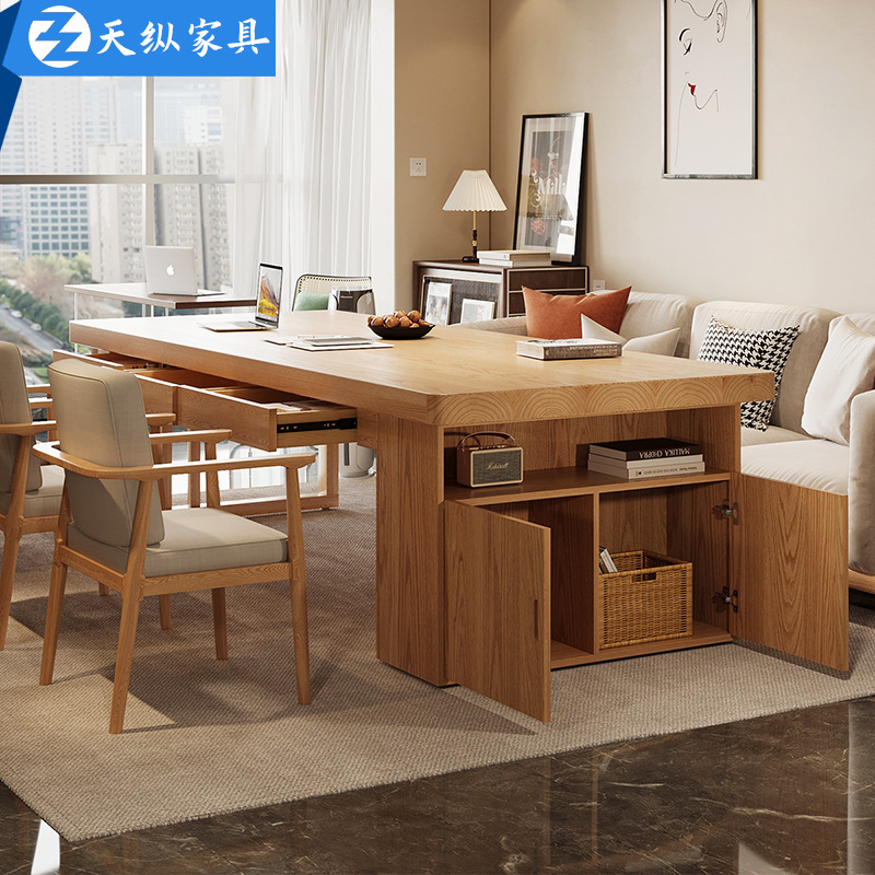 天纵全实木书桌收纳柜一体家用学生学习桌带抽屉客厅大长桌办公桌