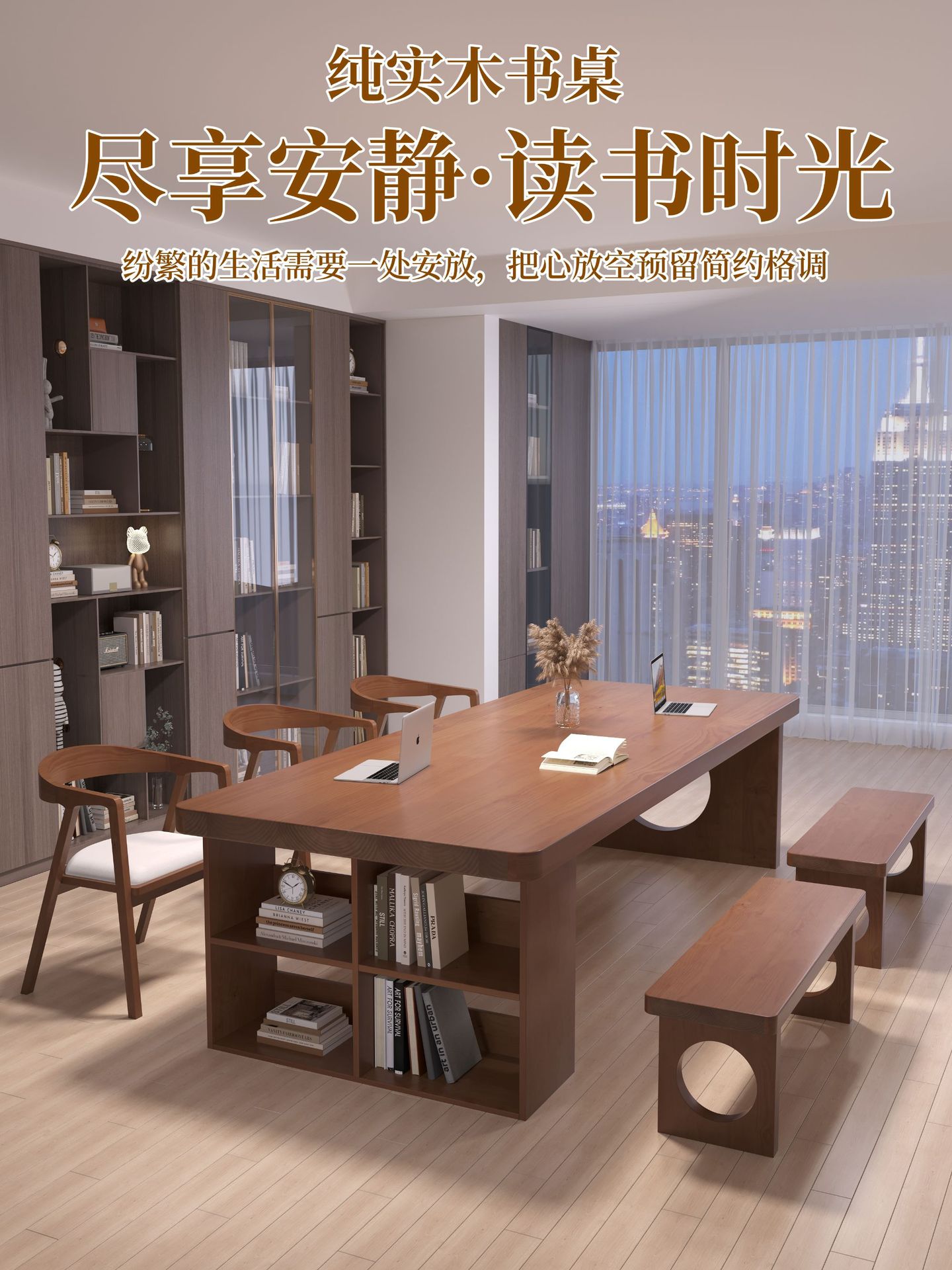 实木书桌新中式家用去客厅化长方形大书桌休闲沙发阅读双人学习桌