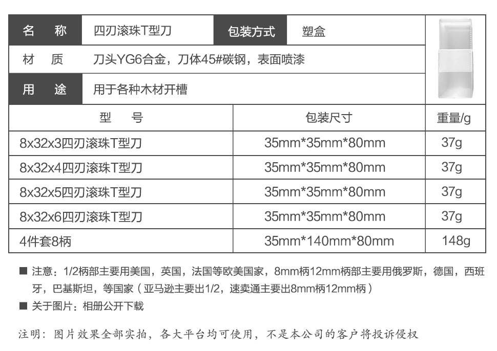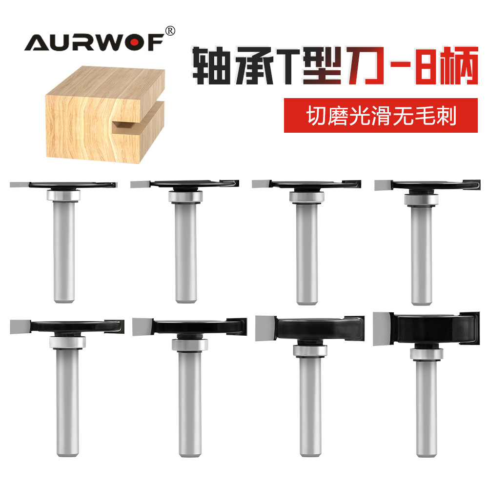 8柄轴承T型刀黑色开槽刀小柄T型刀木工铣刀修边机黑色铣刀刃具