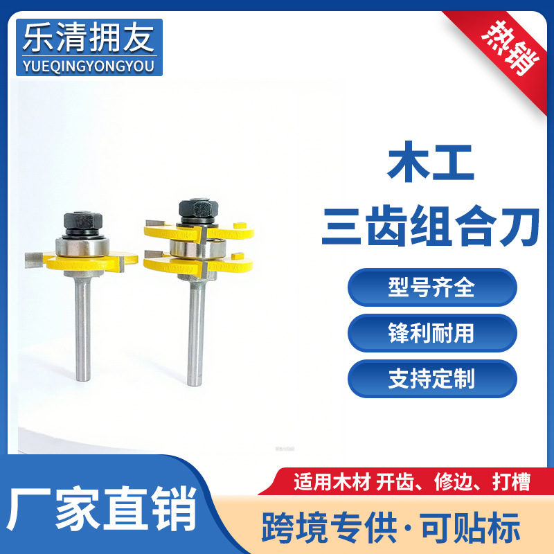 跨境2件套木工拼接开槽45°榫合刀拼板刀 T型榫合刀雕刻机地板刀