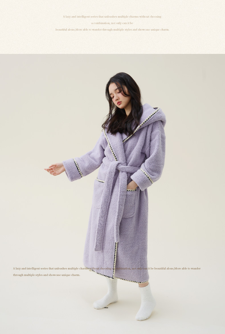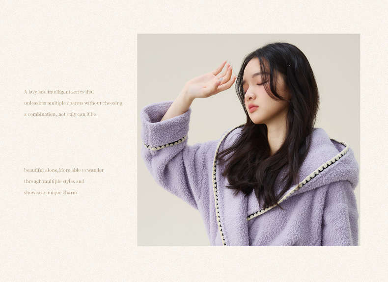 カラー 乳白色の美しいベルベットの帽子付きレースのパジャマ,薄い紫色の美しいベルベットの帽子付きレースのパジャマ,ピンクの美しいベルベットの帽子付きレースのパジャマ,グレーの美しいベルベットの帽子付きレースのパジャマ