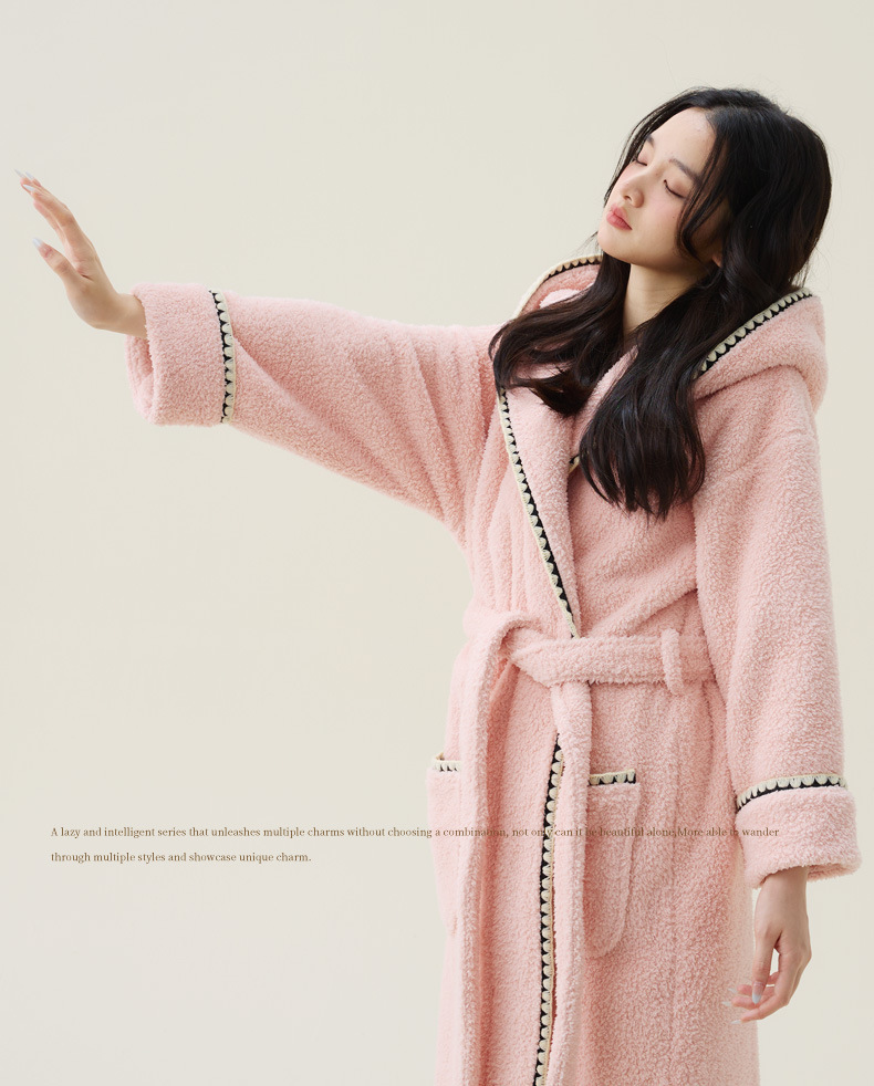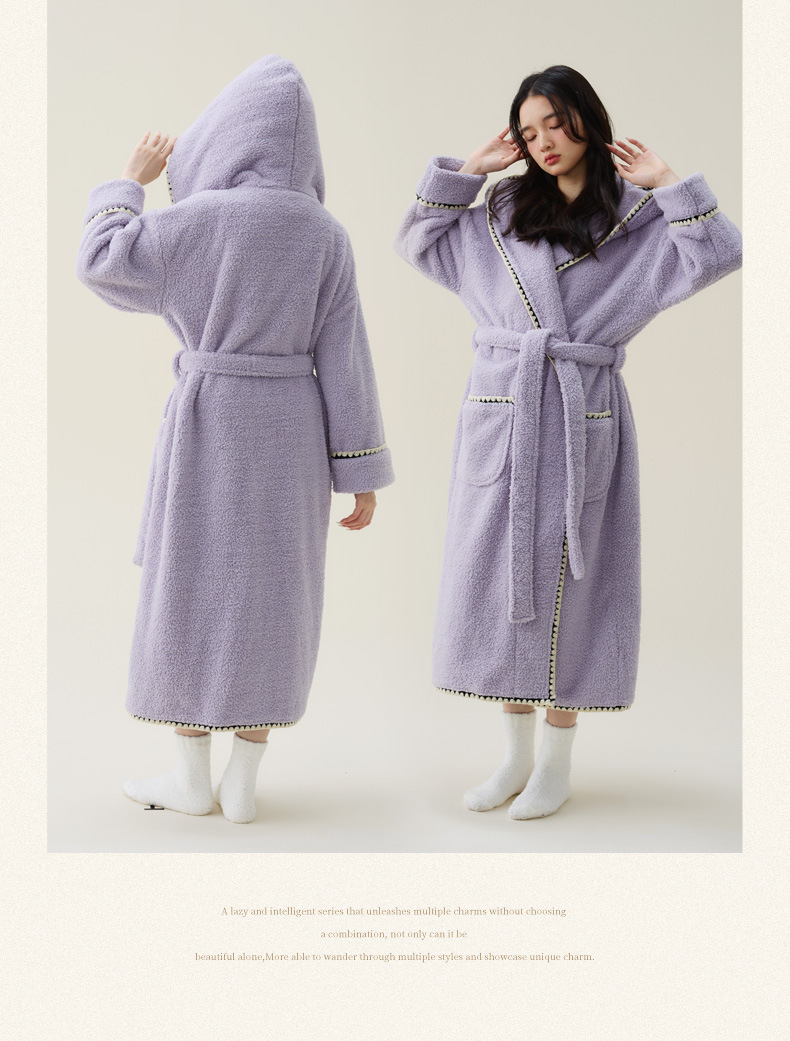 秋冬新作コーラルベルベット厚手男女用ナイトガウン、パジャマ、厚手バスローブ、カップル用ナイトガウンの越境注文