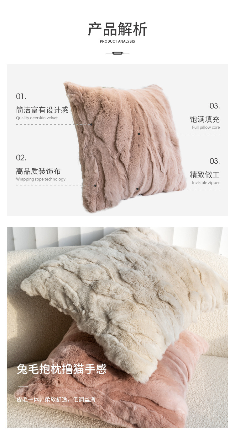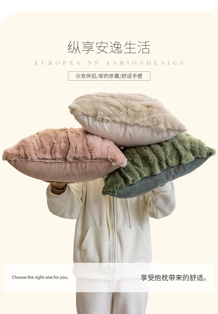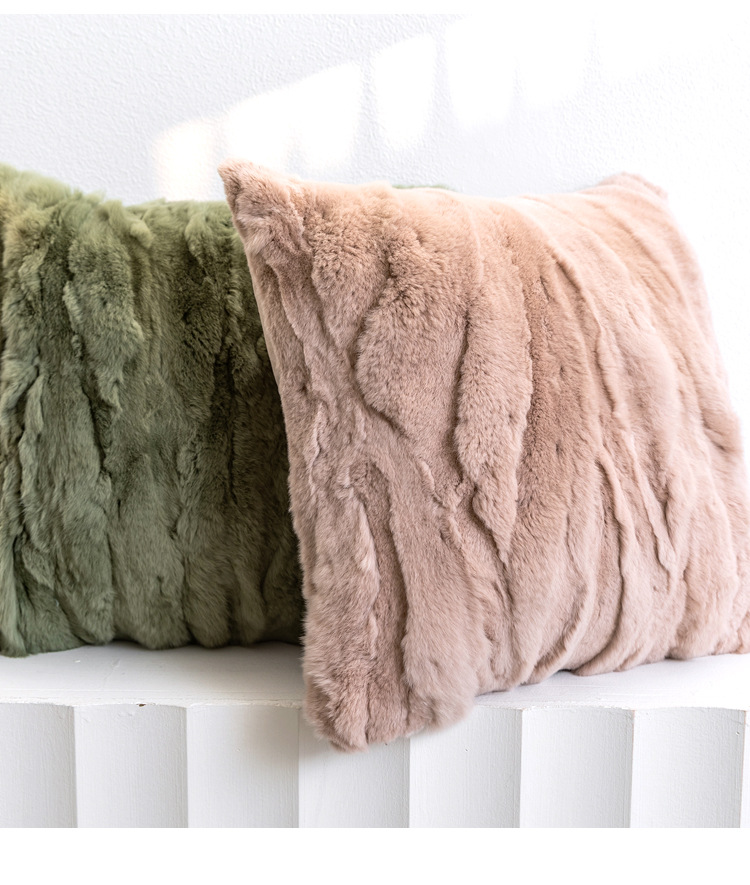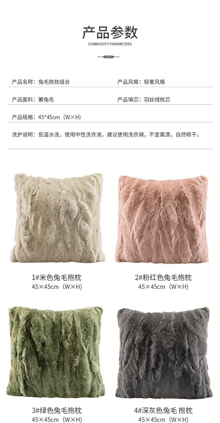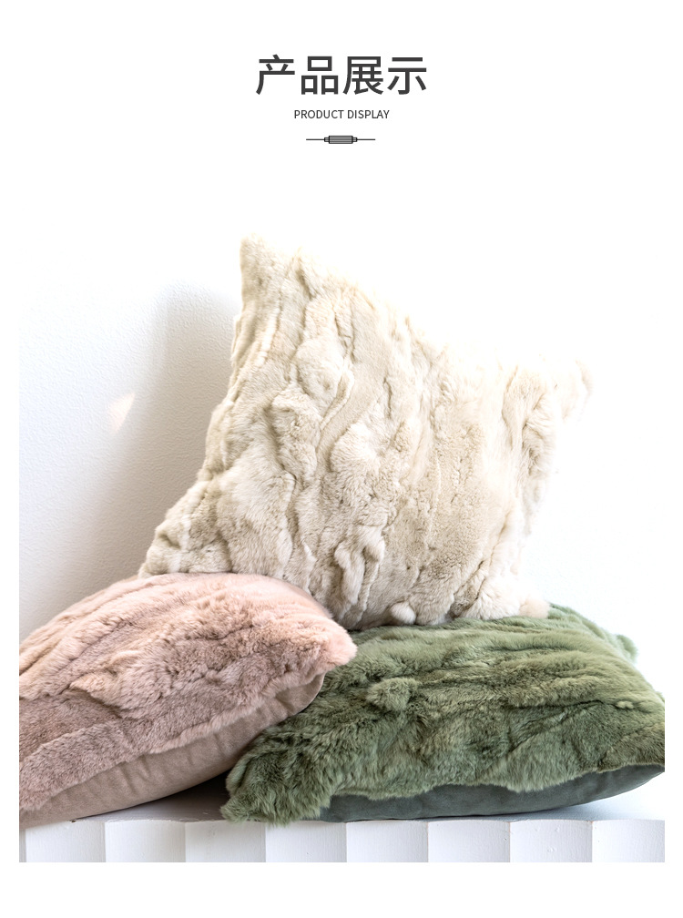 現代のシンプルなリビングソファ抱き枕のウサギの毛の腰枕