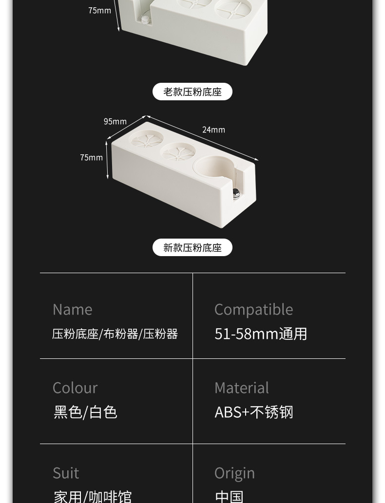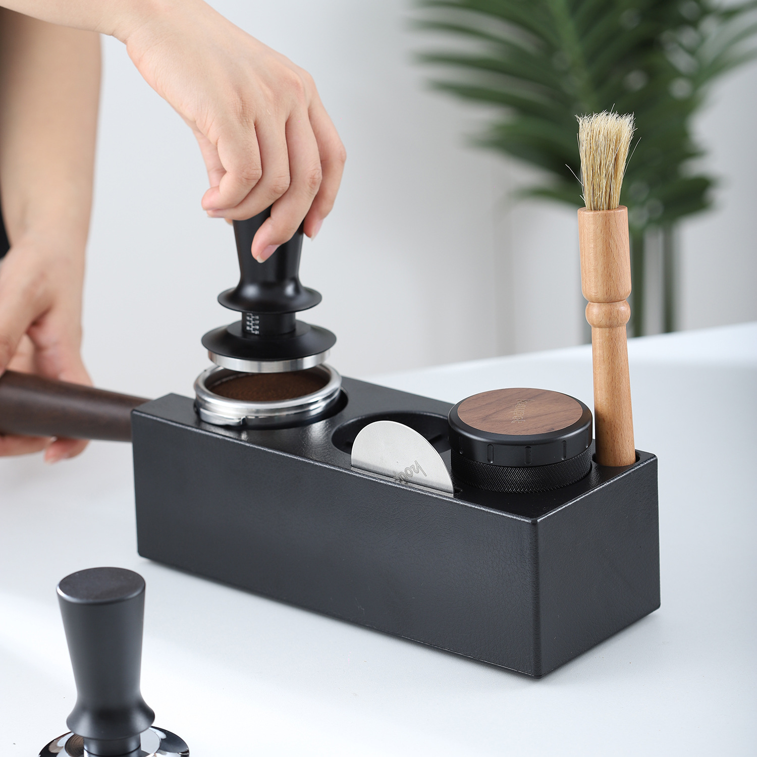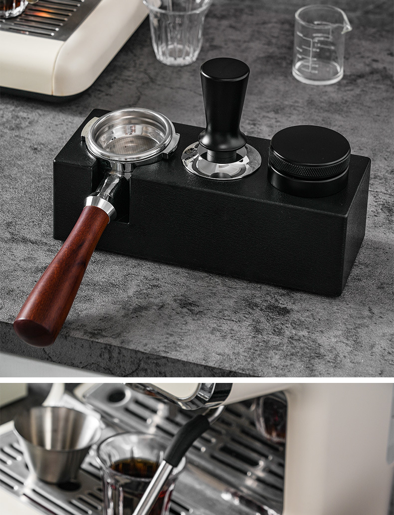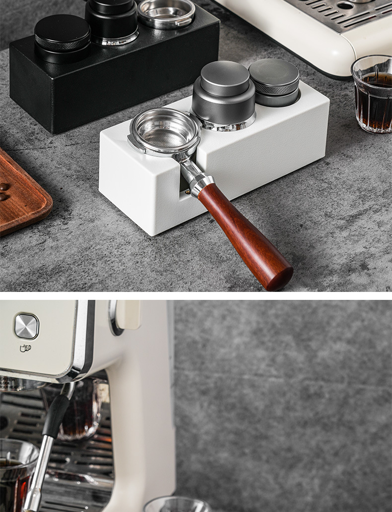 白黒プラスチックコーヒー圧粉座充填シート布粉圧粉器コーヒーハンドルホルダー粉ハンマー収納ベース