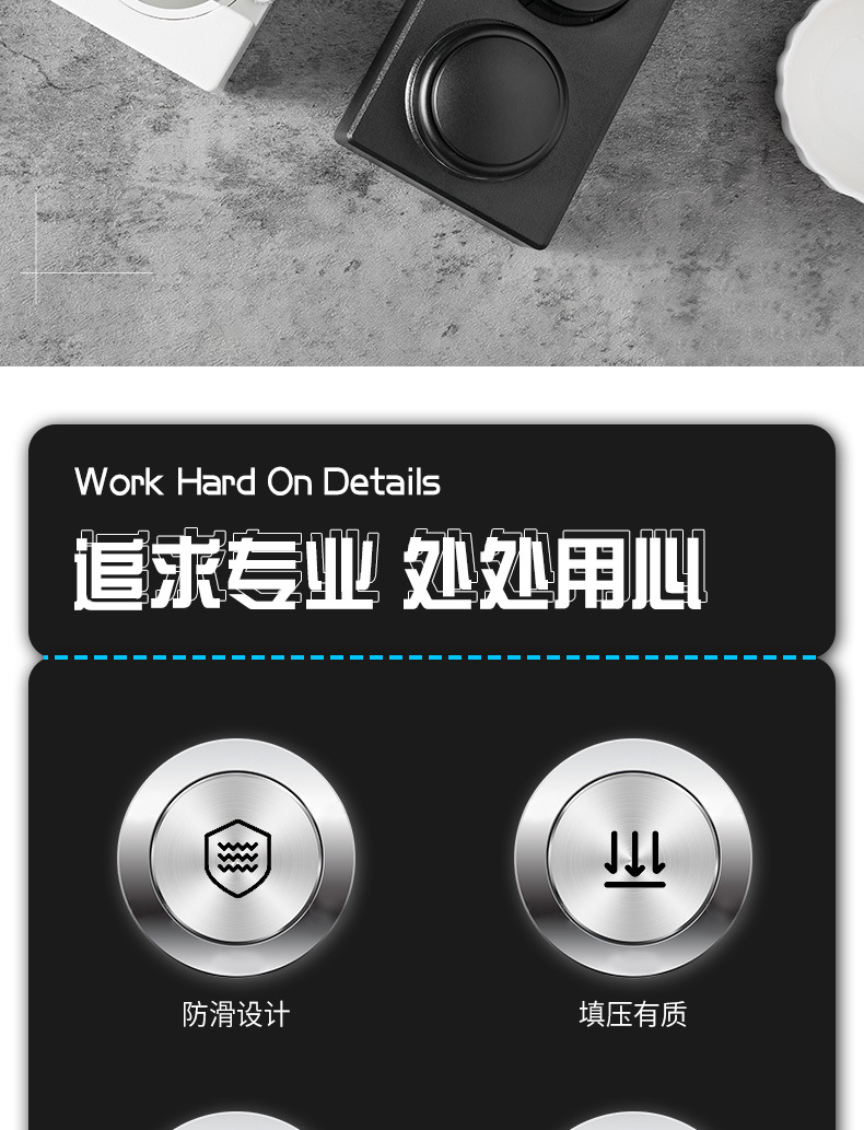 圧粉ハンマー自己重力布粉器58mm適応高さエスプレッソ圧粉器四葉底布粉器