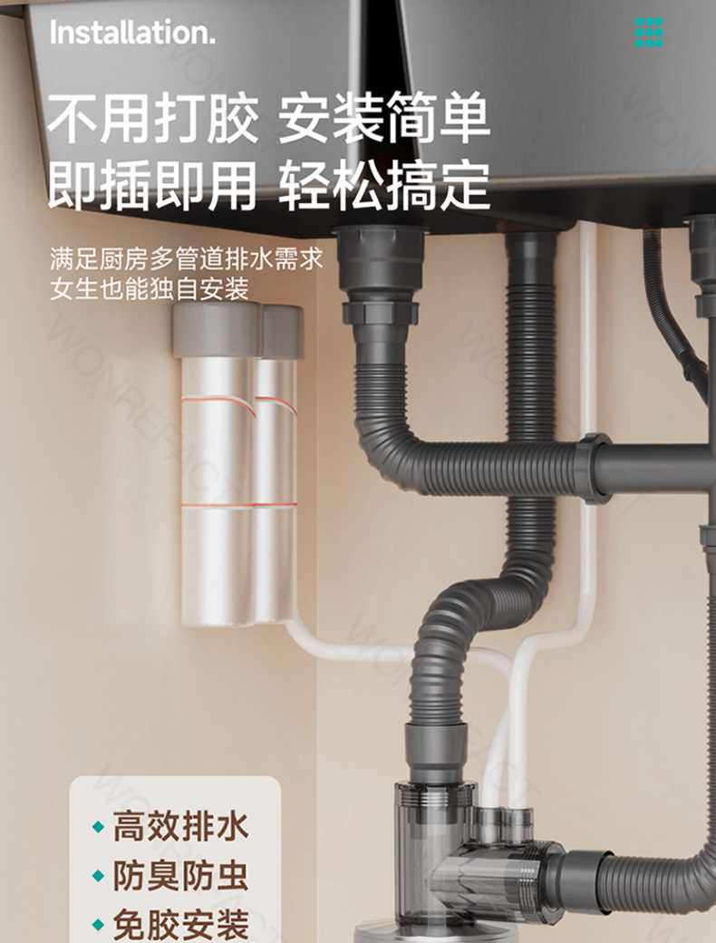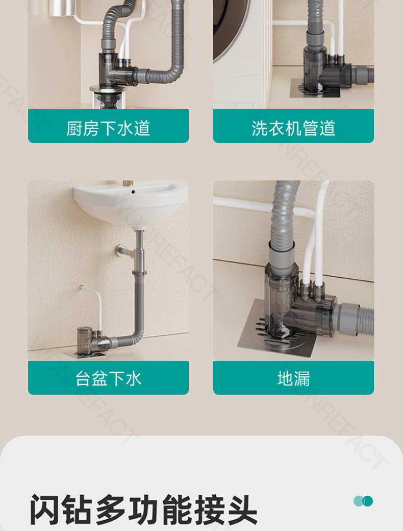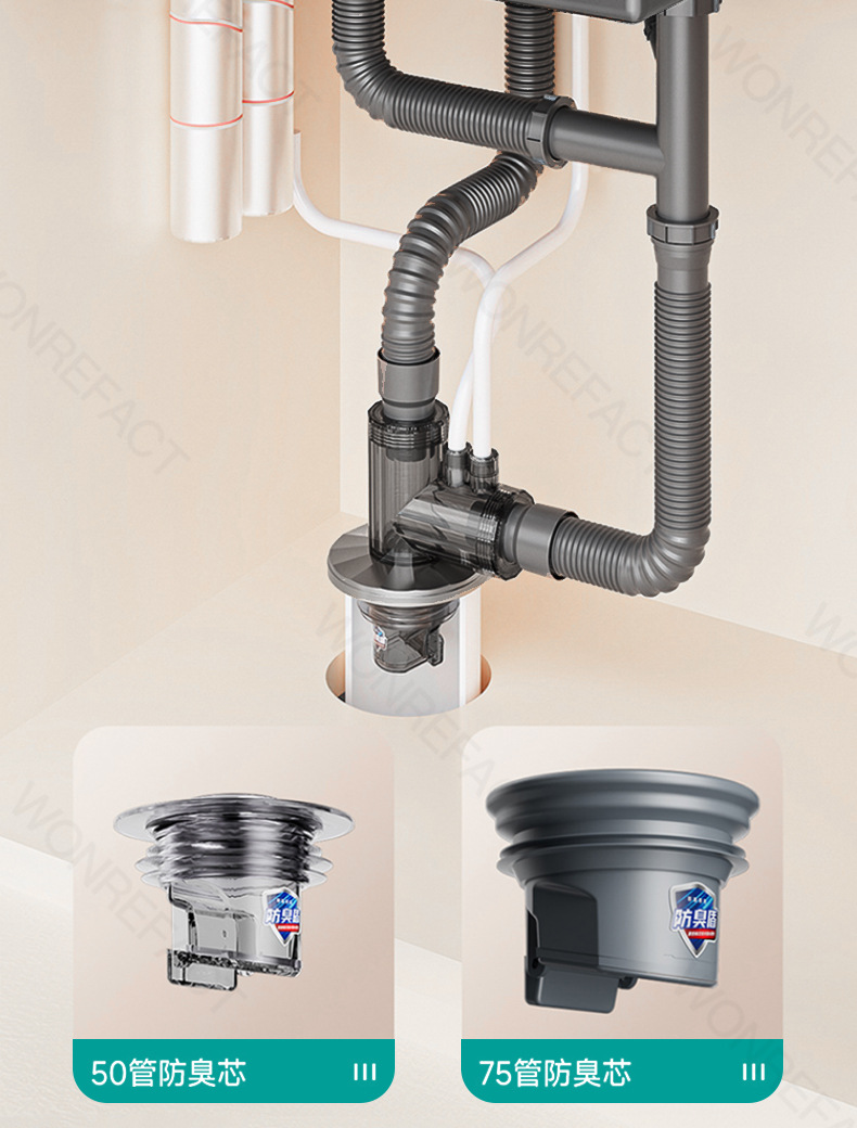 台所下水管三方排水管防臭多機能フロントフィルター食器洗い機浄水器継手神器
