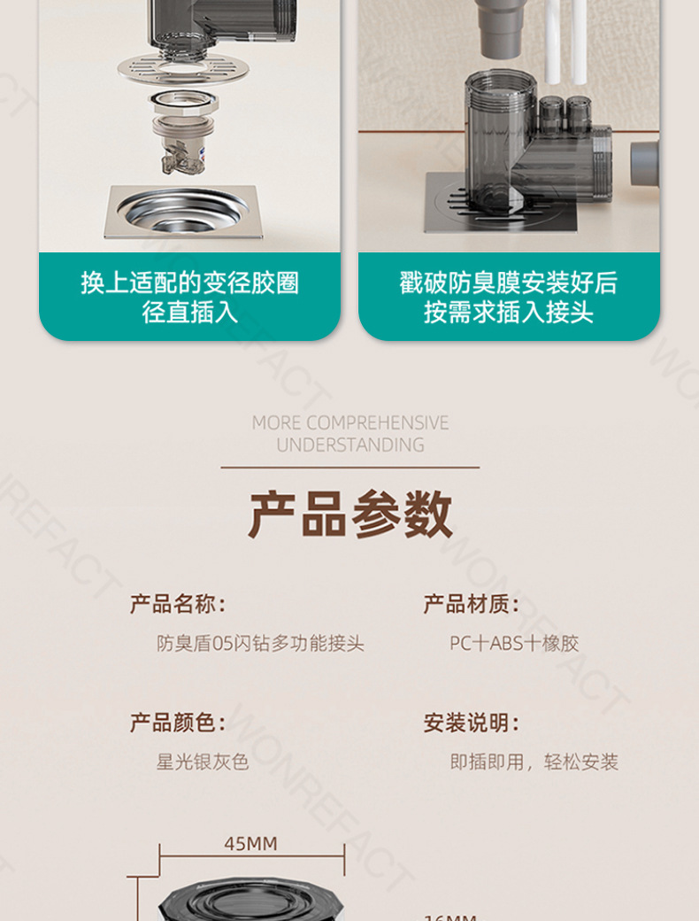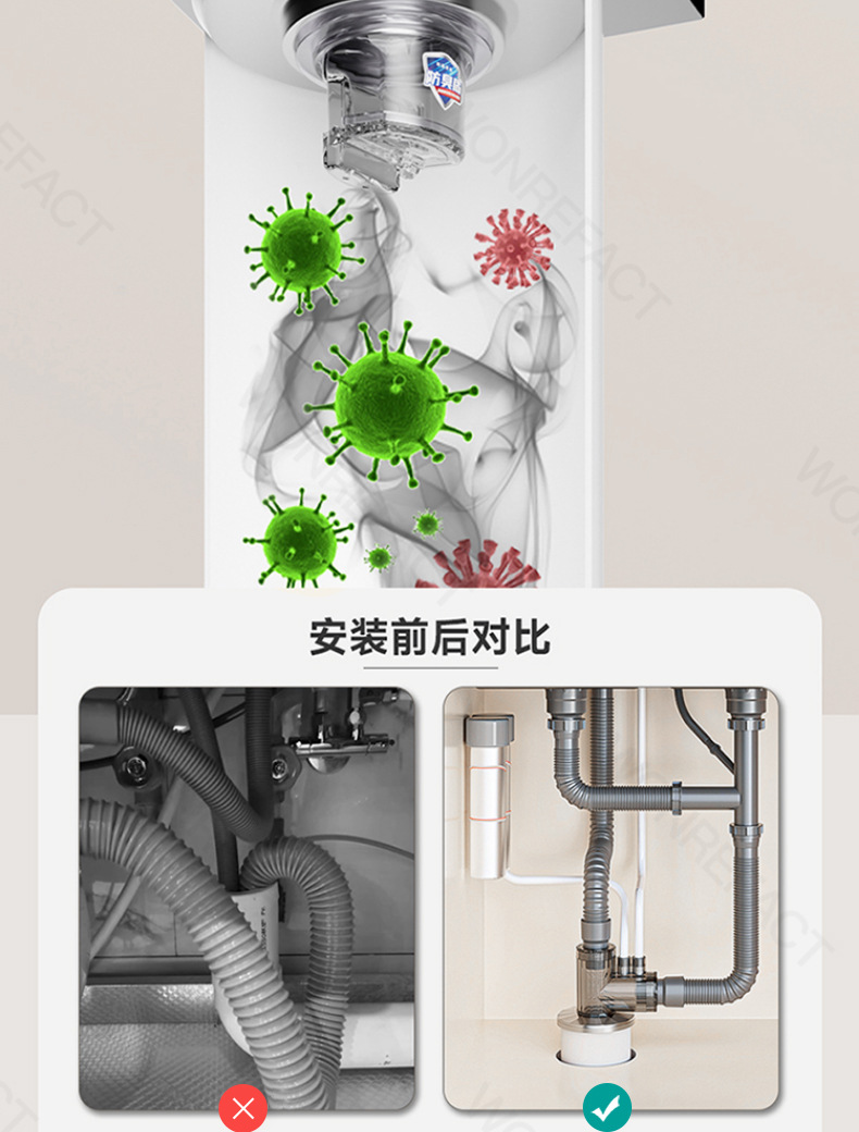 下水管路反臭防止神器封口蓋厨房洗面器洗濯機床漏れ排水管密封栓部品