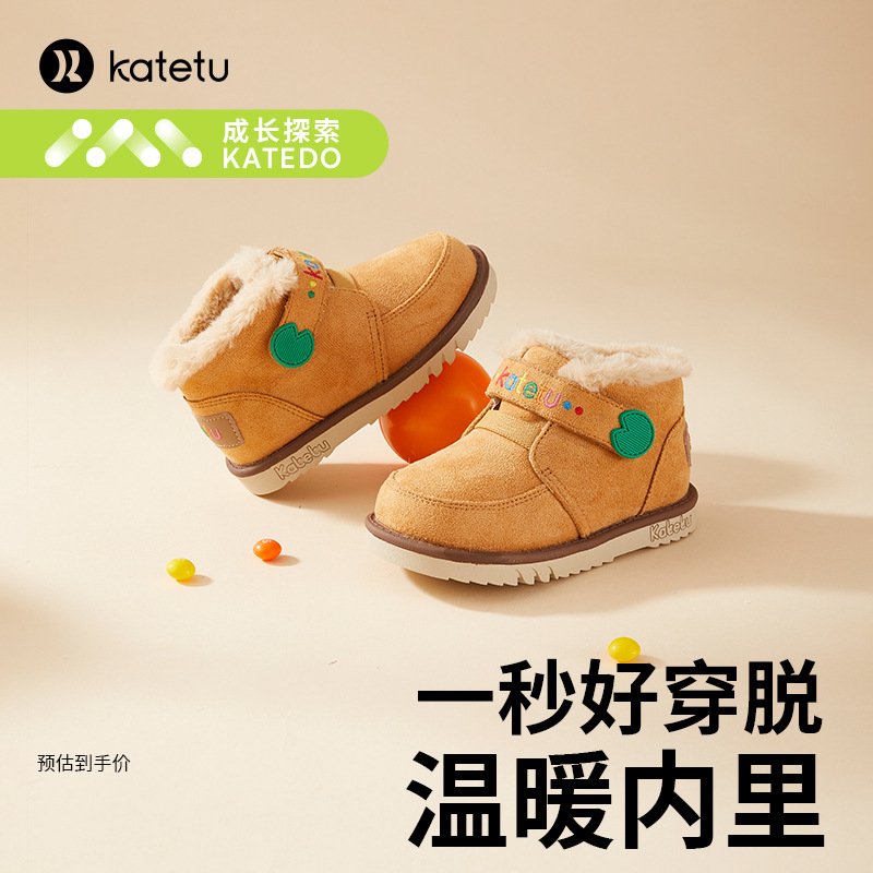 カトウサギ児童雪地靴男児毛皮一体2022冬の新型滑り止めベルベット保温児童綿靴