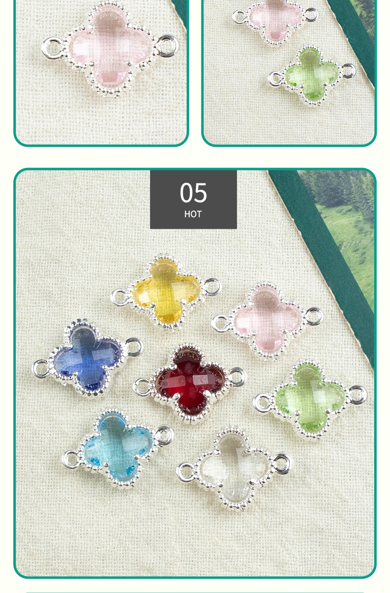 彩色水晶玻璃保色四叶草双孔饰品挂件吊坠diy手链项链吊坠配件