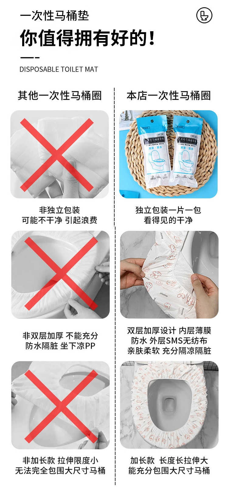 ホテル用使い捨てトイレマット、フルカバー、厚みと拡大、個別包装、旅行用トイレカバー、B&B卸売