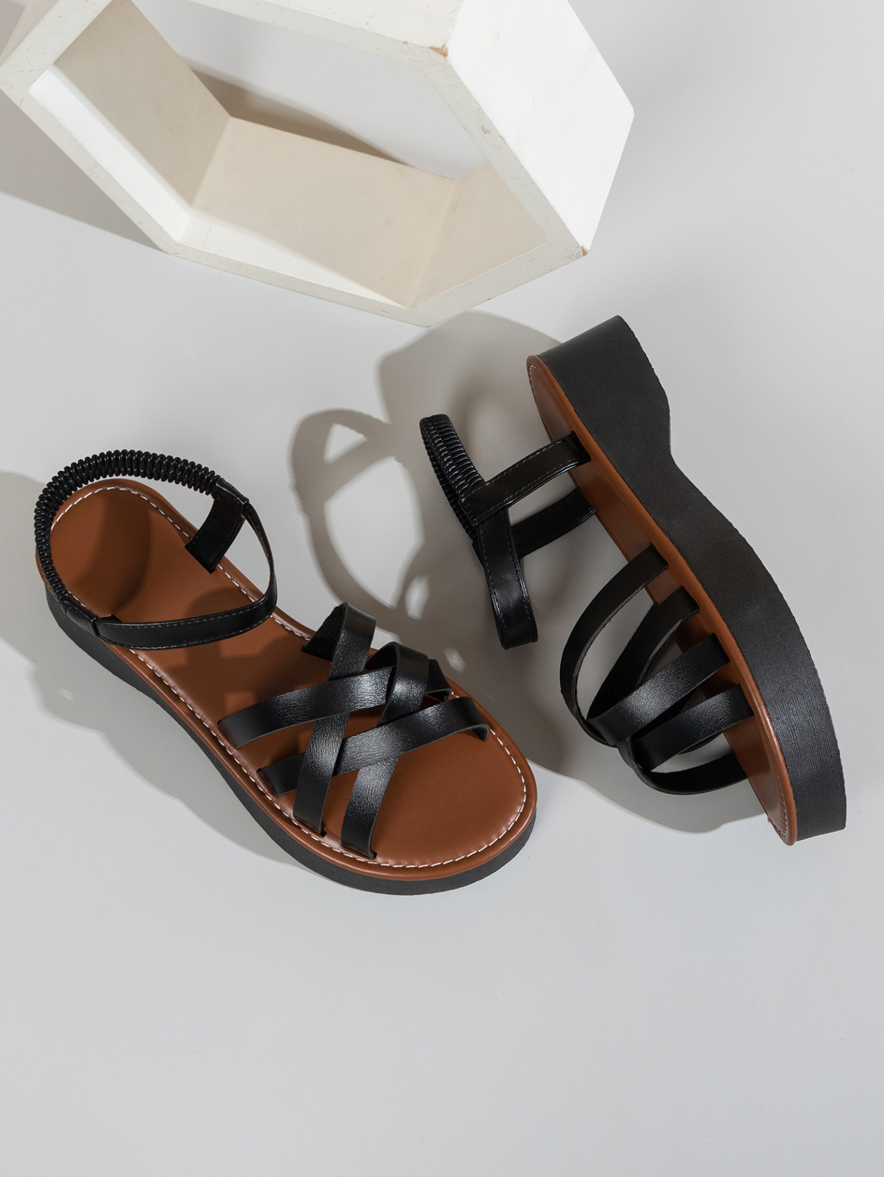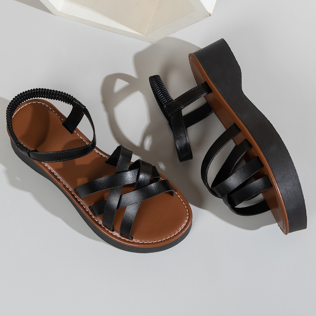 外国貿易の女性靴2023夏の新型欧米の復古の丸い坂と女性のローマの靴のクロスバックルの女性のサンダル