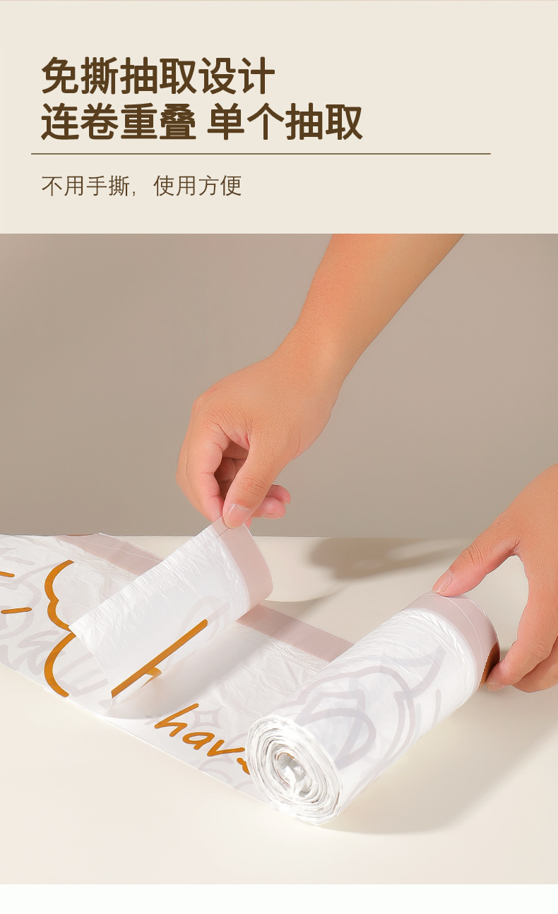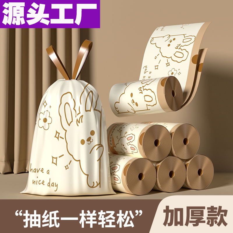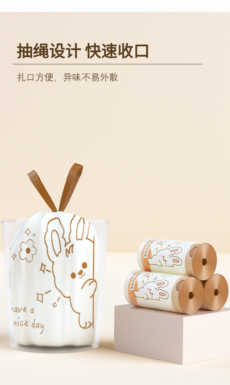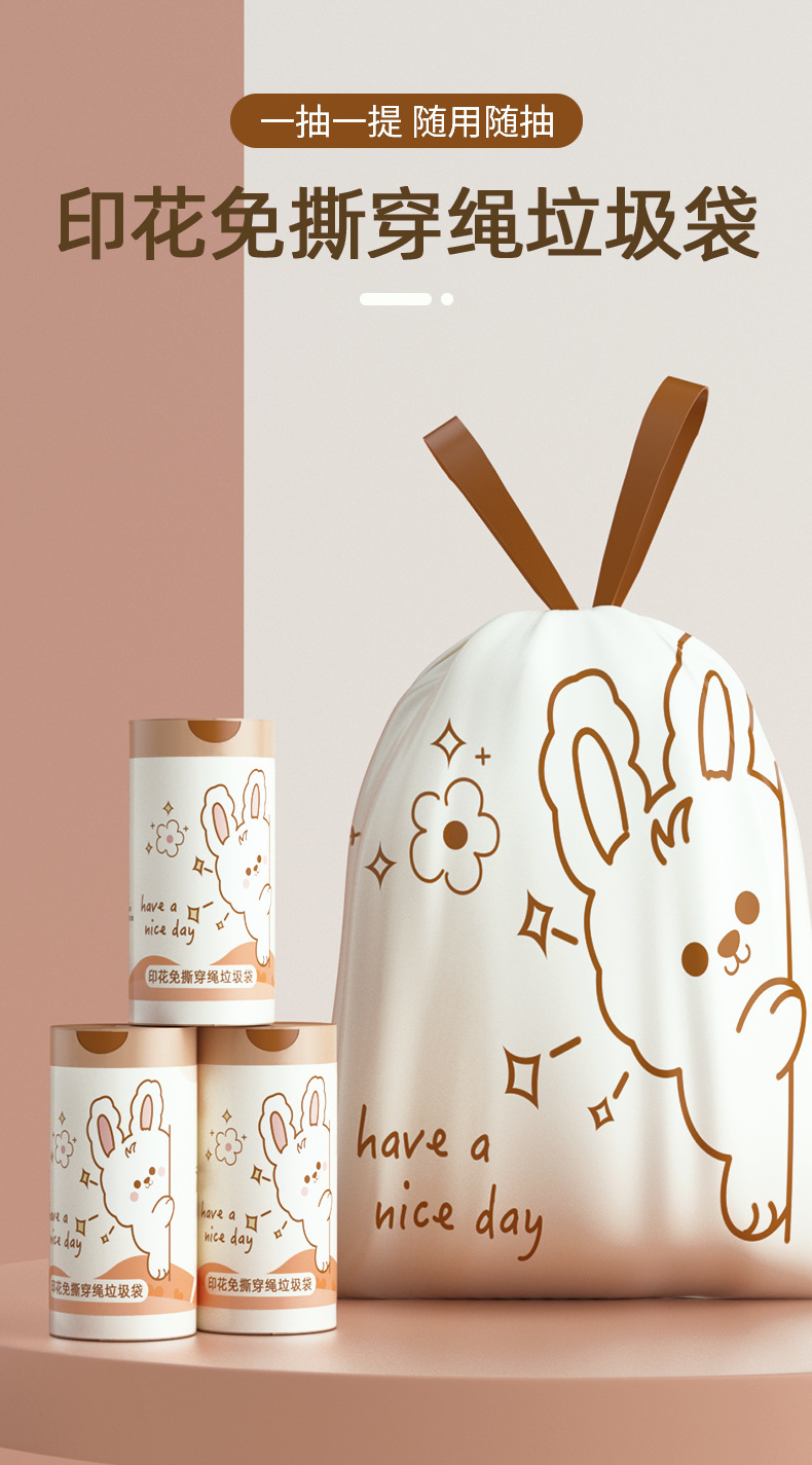 偷看兔印花免撕抽绳垃圾袋家用免撕加厚自动收口耐高温香氛垃圾袋