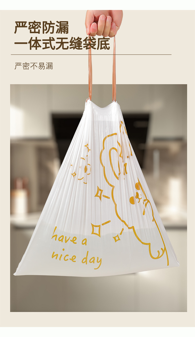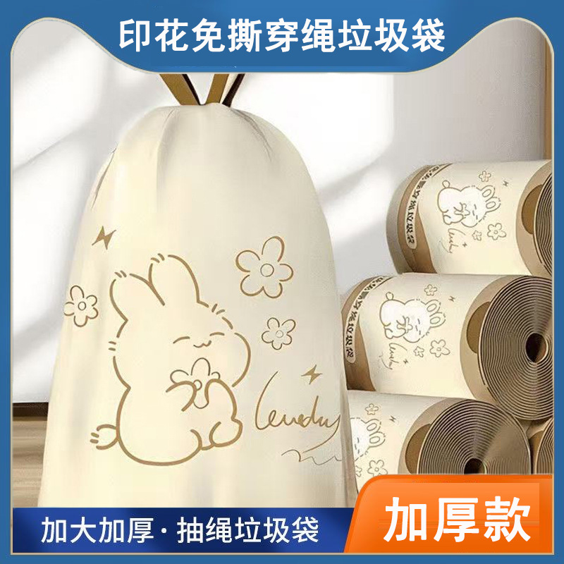 印花免撕垃圾袋 家用加厚手提式厨房抽绳垃圾袋 收口一次性垃圾袋