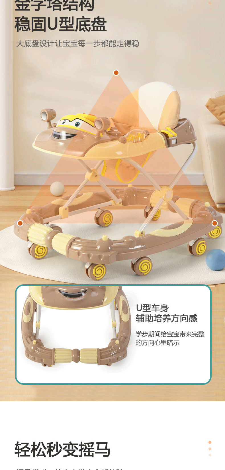【クロスボーダー】乳幼児用歩行車多機能横転防止o字型足手押し車