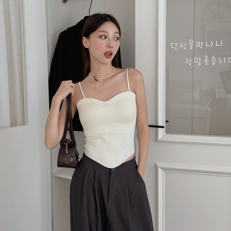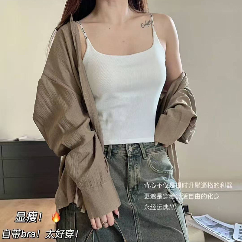 2025夏の新型モーダルキャミソールの女性の中に白いボディスーツを着て痩せている薄いタイプのシャツを着ています。