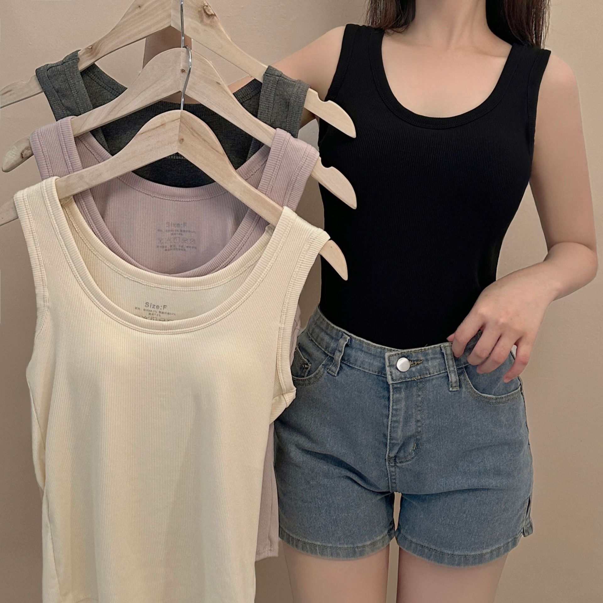 纯色带胸垫吊带保暖背心修身显瘦打底外穿女士无袖美背一体杯上衣