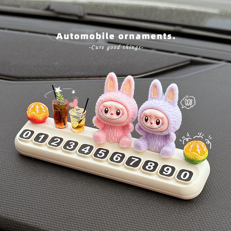 拉布布labubu临时停车号码牌车载中控台可爱摆件创意汽车挪车电话