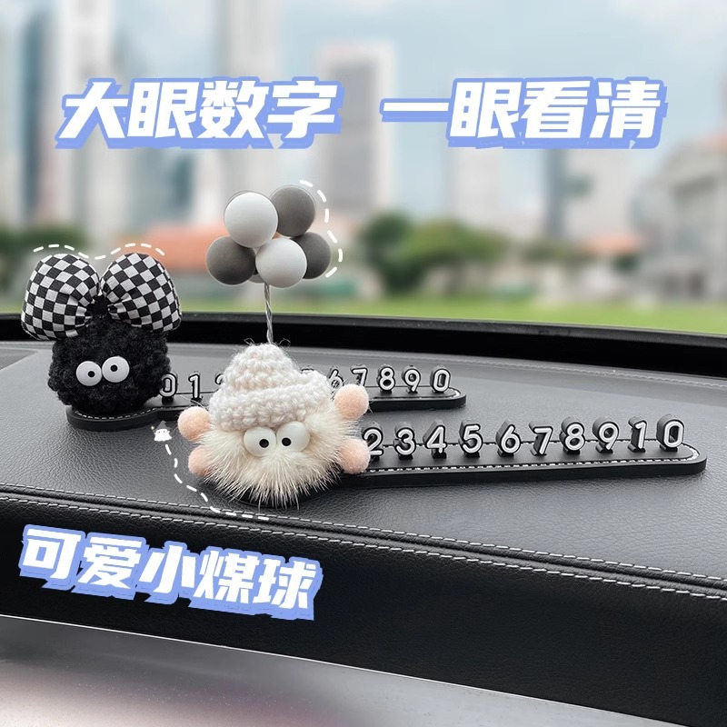 かわいい石炭ボール駐車番号札創意車載デジタル移動ナンバープレート高級アニメ女性アクセサリー自動車置物
