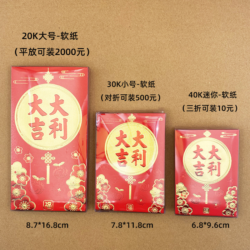 卸売り20k 30k艶紅紙箱紅包新年伝統軟紙利は高級紅包袋である