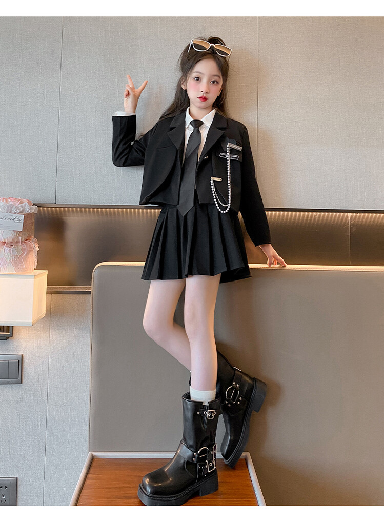 ブラック2点セット + チェーン,グレー2点セット + チェーン,ブラックシャツ3点セット + ネクタイ + チェーン,グレーシャツ3点セット + ネクタイ + チェーン