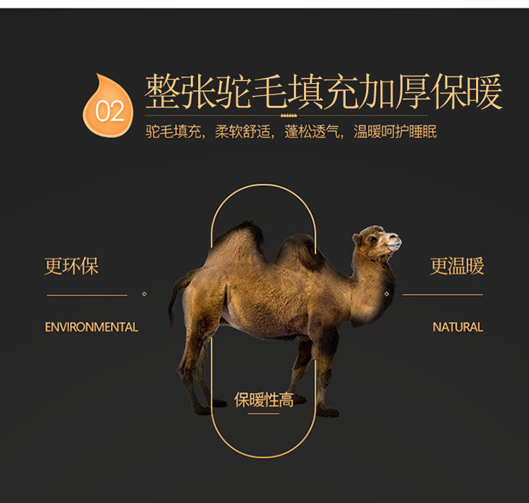 ラクダの毛の布団は芯に厚くされています。冬は二人で保温されています。