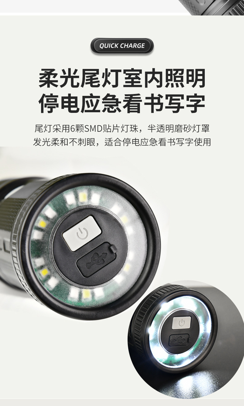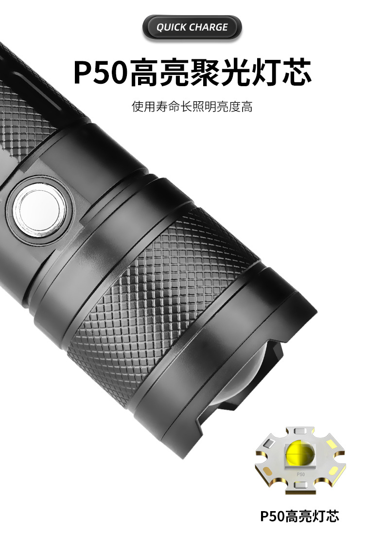 クロスボーダーp70强い光ズーム白レーザー懐中电灯电力量表示usb充电アウトドア照明强い光懐中电灯
