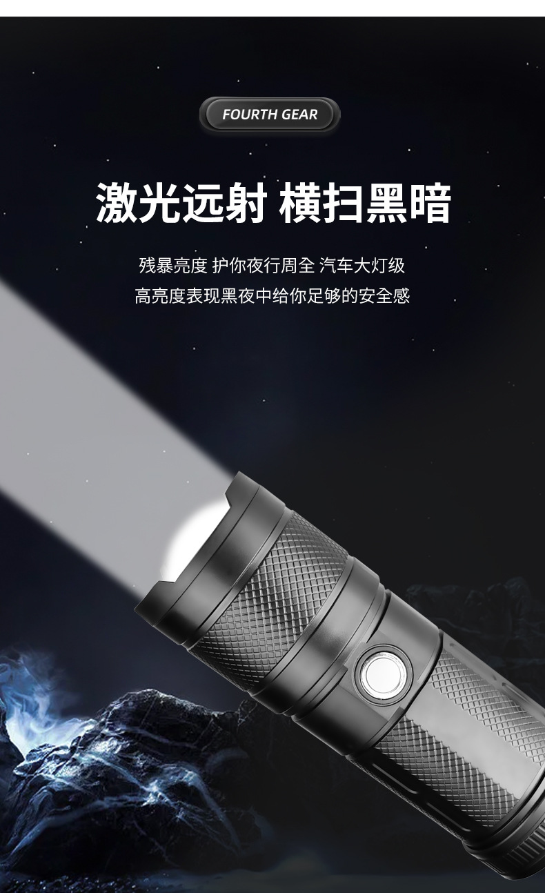クロスボーダー特殊兵懐中電灯遠射黒科技四核白レーザー超亮懐中電灯側灯パトロール強光懐中電灯
