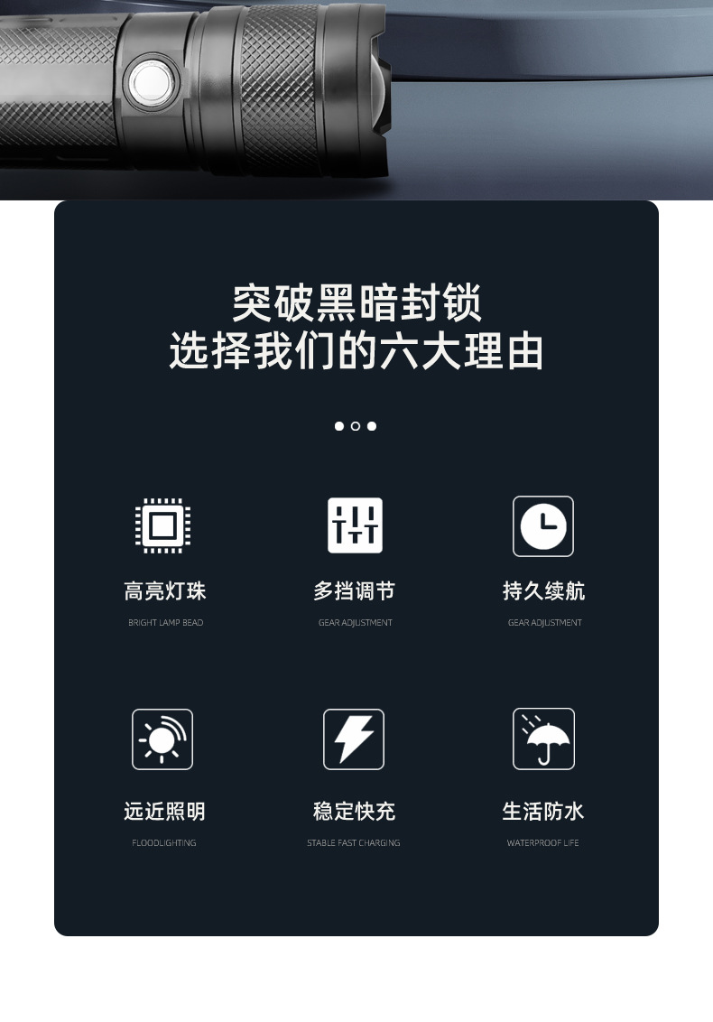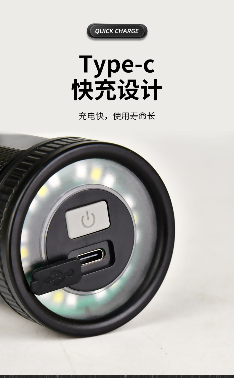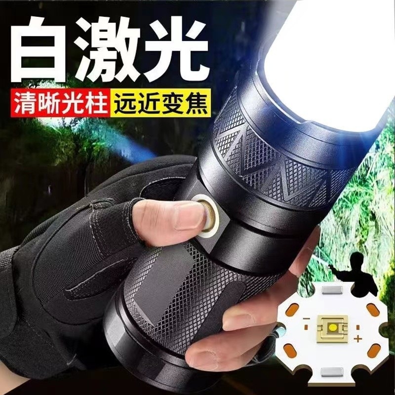 クロスボーダー白レーザー穿天砲伸縮ズーム懐中電灯USB充電アルミニウム合金超亮持続航続懐中電灯
