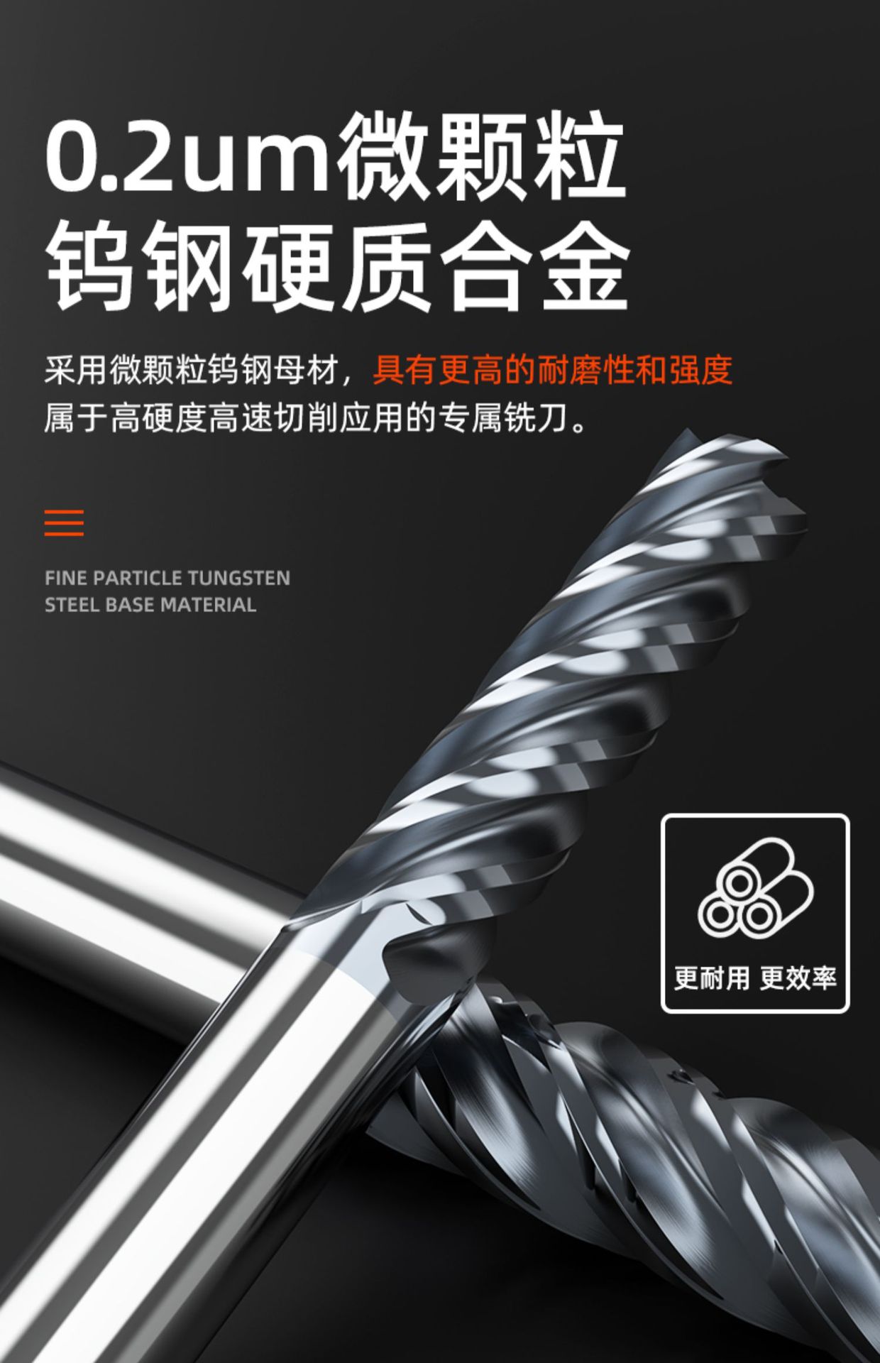 七彩アルミ用フライスタングステン鋼三刃専用nc cncカッター硬質合金マイクロ小道深溝エンドミル