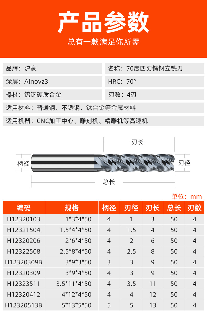 上海豪4刃70度タングステン鋼フライス硬質合金cnc nc工具延長ステンレス専用エンドミル