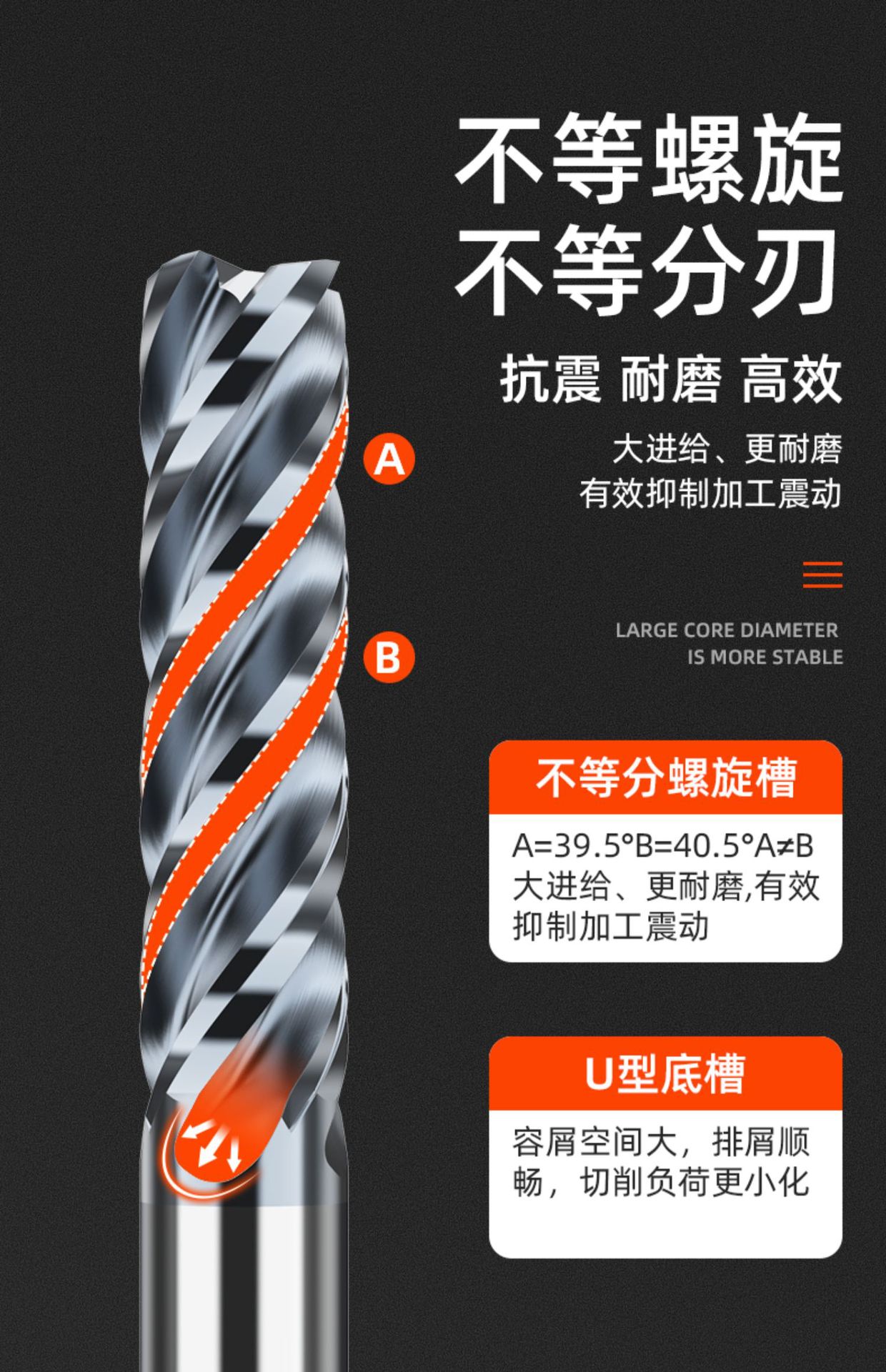 70度4刃タングステン鋼フライスステンレス専用硬質合金平底四刃粗仕上げフライスcnc nc工具